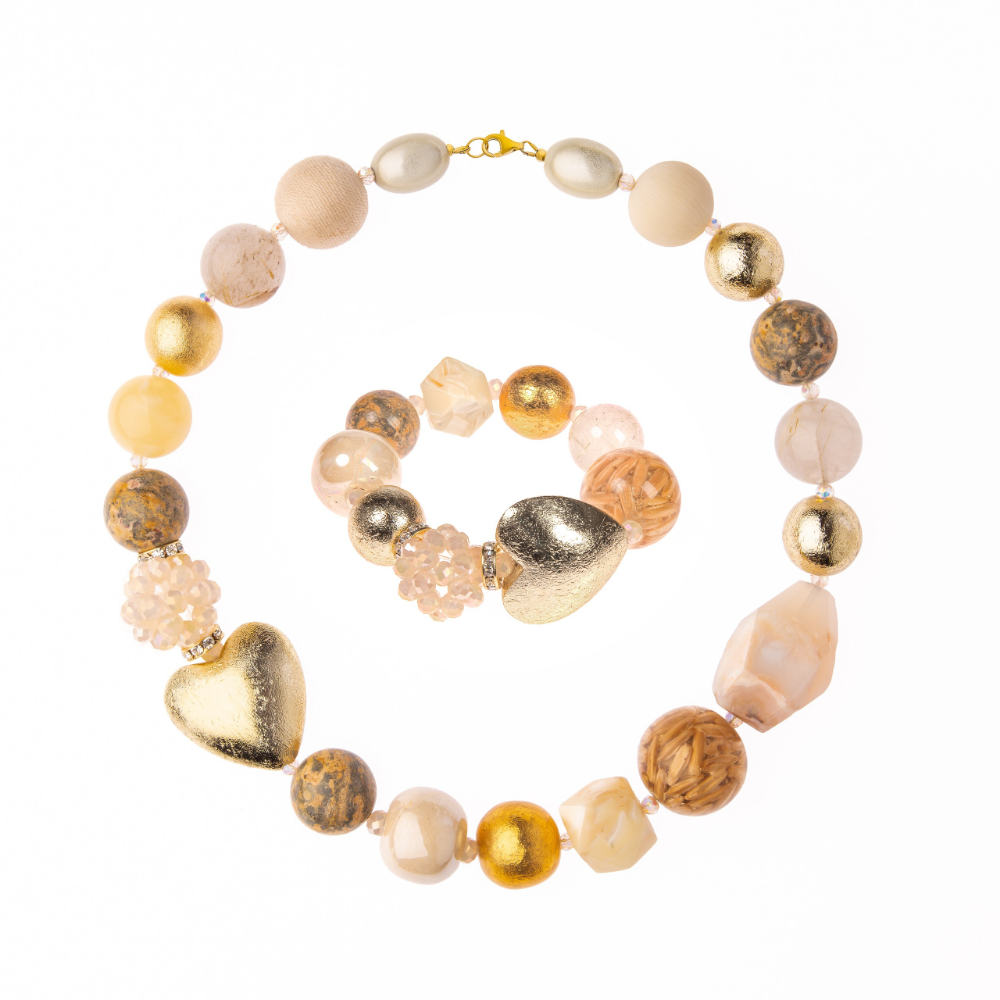 Náhrdelník a náramok Summer so srdcom zlatý je luxusný a výrazný šperk z veľkých korálok, ktorý zvýrazní štýl a dodá outfitu exkluzívny charakter